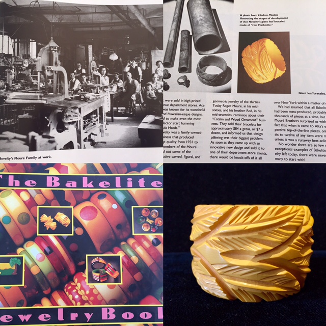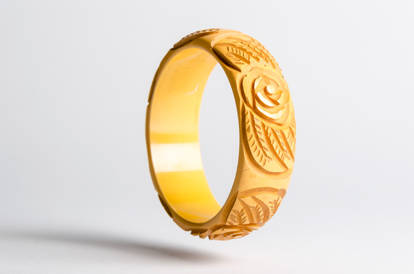 Facts about Bakelite are widely known and easily researched. Rather than a redundant list of Bakelite facts, we share some facts you may not know: For instance, did you know that “Bakelite” jewelry is actually made from a very similar plastic called Catalin. True Bakelite is only found in Black or Brown while Catalin can be found in a wide variety of colors. Catalin is produced the same way as Bakelite, but without extra fillers.